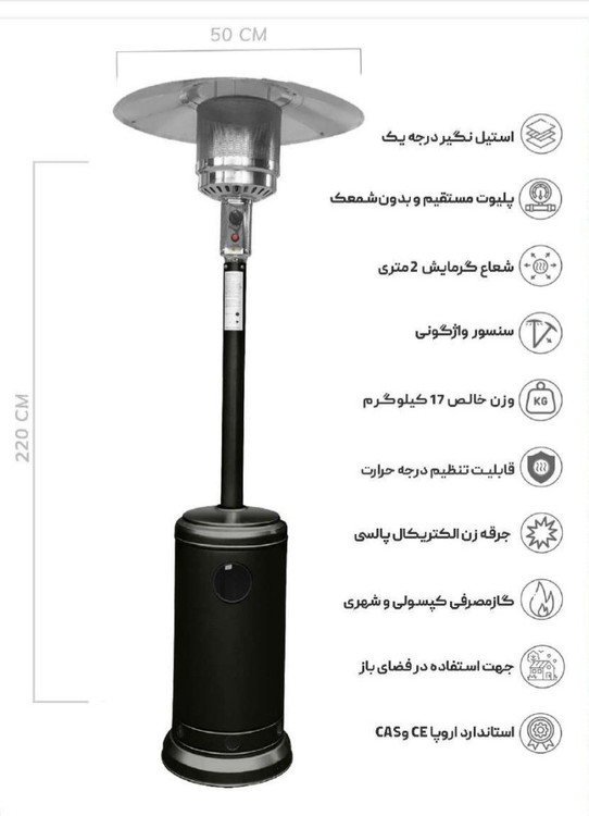 بخاری قارچی استیل مشکی کوره ای استاتیک،و بیرنگ رنگ استیل. گازی تمام استیل۳۱۶وارداتی مخزن دار،جهت جای گذینی،کپسول گاز۱۱کیلویی قابل نصب گاز شهر وکپسول،سنسوراطمینان دارد، ترموکوبل،فندک پالسی،الکتروکال شعاع گرمایش۲متر،محیط تحت پوشش۳۲متر